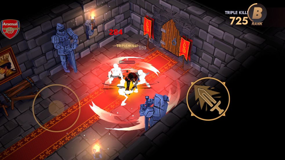进入游戏后即刻投入战斗,左侧虚拟摇杆控制角色移动,右侧负责攻击操作,长按可触发冲锋动作,快速逼近敌人或脱离险境。