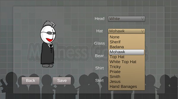 在右侧选择“head”“hat”“glass”“shirt”等选项,自由搭配发型、帽子、眼镜、肤色和服装,打造专属形象,完成后点击“Save”保存设置。