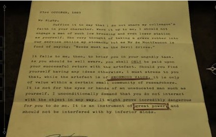 信中文字阴森可怖,末尾一句“我不是这所房子里唯一的鬼魂”令人不寒而栗。读完后获得一副关键道具——特殊眼镜。