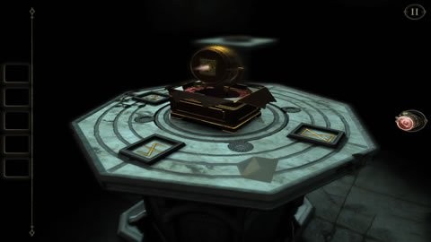 游戏从一间昏暗的屋子开始,中央摆放着一张透着诡异气息的方形桌子,走近细看是解谜的第一步。