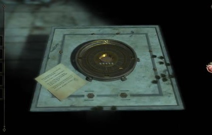 回到多边形桌,将铁球置于中央圆盘,机关显现,但需输入密码方可继续。