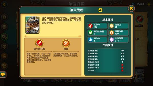 战舰为空中高伤单位,坦度不错,但无法对空、机动性差,移动后不能攻击,更适合防守或特定AI对局。