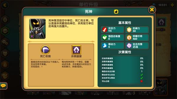 幽灵兼具隐身与飞行能力,可绕后突袭后排,40%远程抗性配合惊吓技能,对依赖技能的单位构成极大威胁,常用于卡位或辅助进攻。