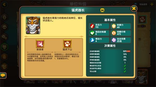 老虎是近战之王,50%近战抗性使其无惧任何近战组合,森林中防御高达75,伤害可观,但惧怕远程单位,极度依赖地形与走位,需大量练习才能驾驭。