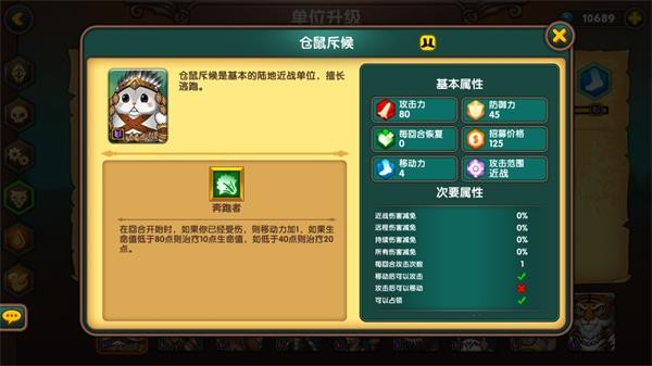 兽族老鼠作为基础兵,80点攻击偏低,125价格无双抗,整体表现疲软。