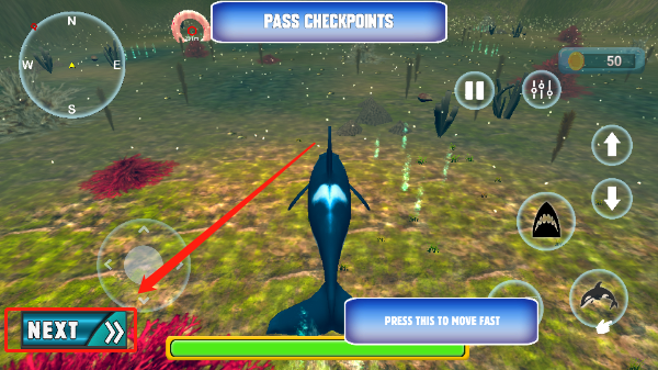 连续点击“next”完成教学流程后,便可正式操控虎鲸展开海洋冒险。