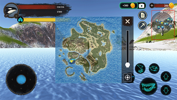 点击右上角地图图标,可查看周边生物分布及完整海域地形信息。