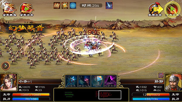 夜幕:使战场天色转暗,大幅降低敌军命中率。此技能通常为统将所用,但对深入敌阵的吕玲绮而言,能有效提升面对统将时的存活几率。