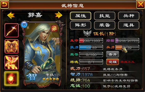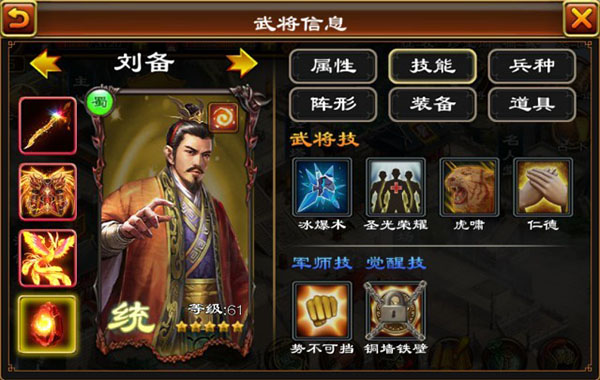 刘备作为顶级统将,属性全面,军师技可召唤援军。将兵力升至60级后,召唤单位具备20%闪避,实用性极强,唯独耗蓝较高需注意资源管理。