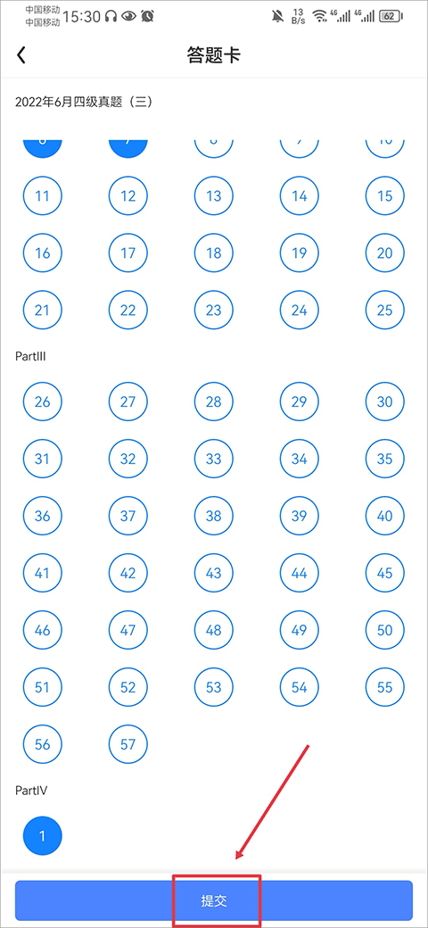 在模考页面选择四级或六级真题试卷开始作答。
