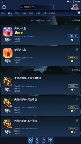 用户可通过搜索快速定位感兴趣的信息,还能及时领取平台发布的各类游戏礼包。