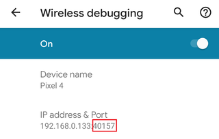 填入当前“无线调试”页面显示的端口号(该端口每次启用无线调试时会动态变化)。