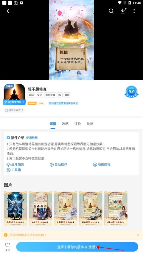 进入光环助手后,从游戏库中选择目标游戏,例如《想不想修真》,点击下方按钮确认对应的游戏版本;