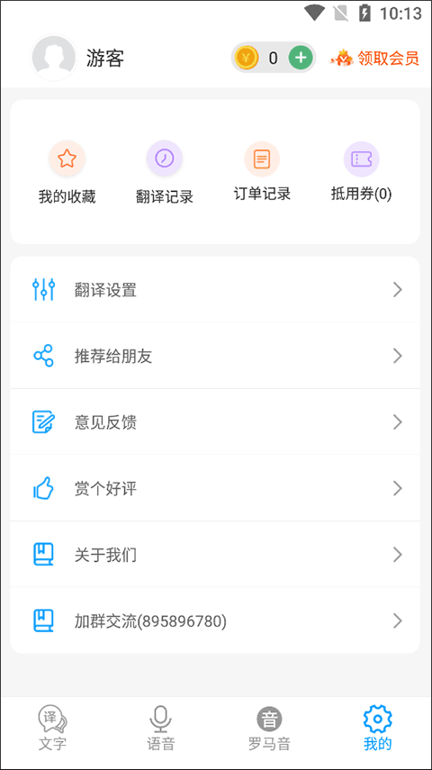 打开软件后,进入“我的”页面,点击“翻译设置”选项,即可进入配置界面。