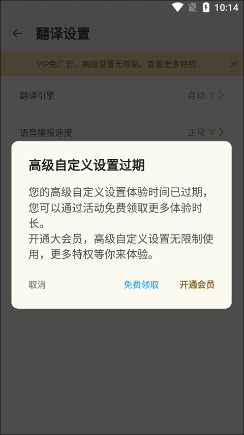 部分高级设置需通过免费领取试用或开通会员权限方可启用,点击对应选项后会弹出相应提示。