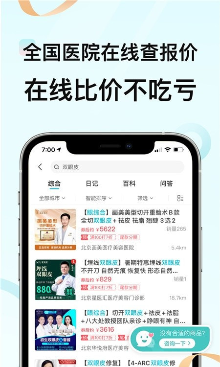 携手6000多家合作医疗机构,万余名专业医生在线答疑,手把手指导变美路径。