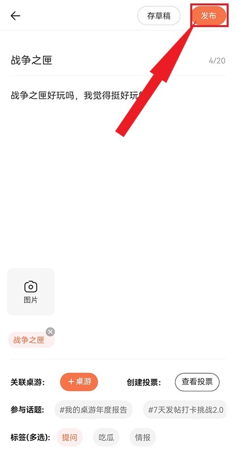 若想发起互动,可在发布前点击右下角“投票”功能,创建投票主题邀请其他玩家参与讨论。