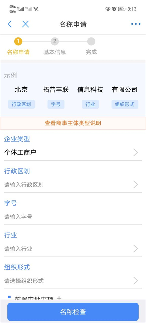 6、然后填写好相关的信息完成名称办理。