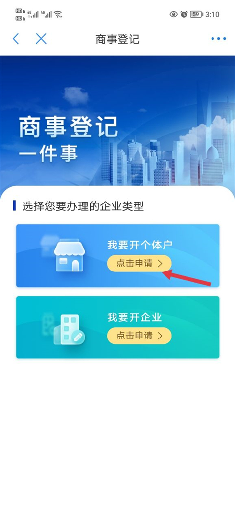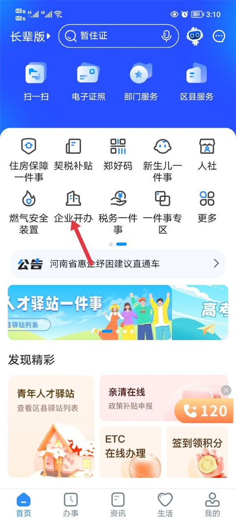 1、在软件首页当中点击企业开办功能。