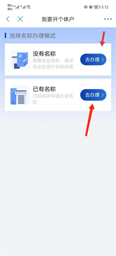 5、如果没有企业名称的需要先点击办理名称。