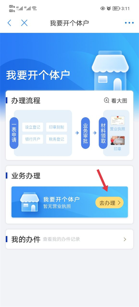 3、找到去办理功能点击。