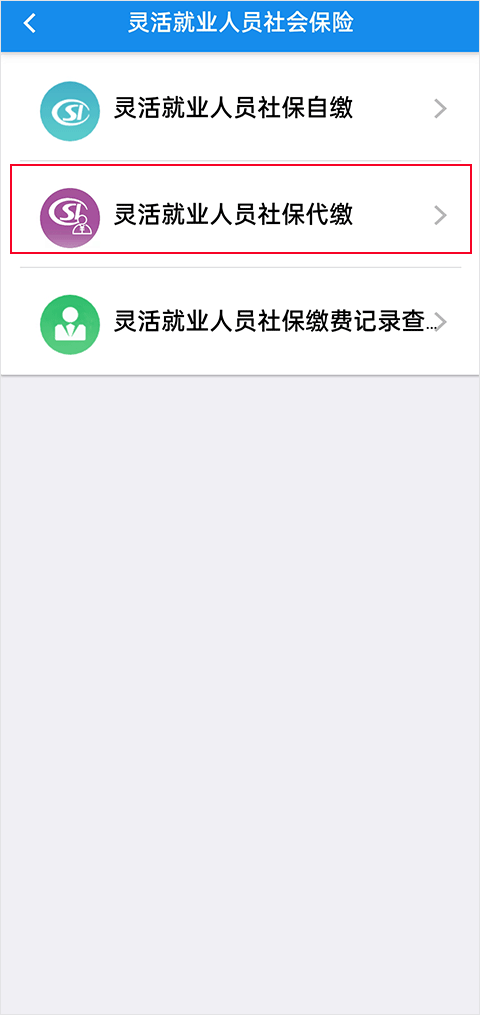 进入后选择“灵活就业人员社保代缴”服务项目。