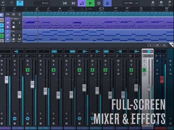全屏混音器与效果模块,提供沉浸式调音体验。