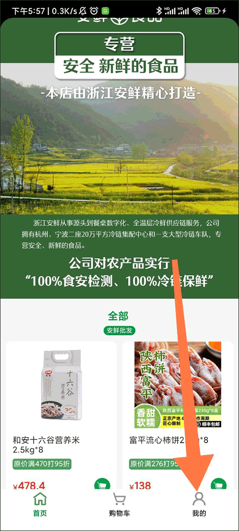 打开安鲜生活app,点击底部“我的”进入个人中心页面。